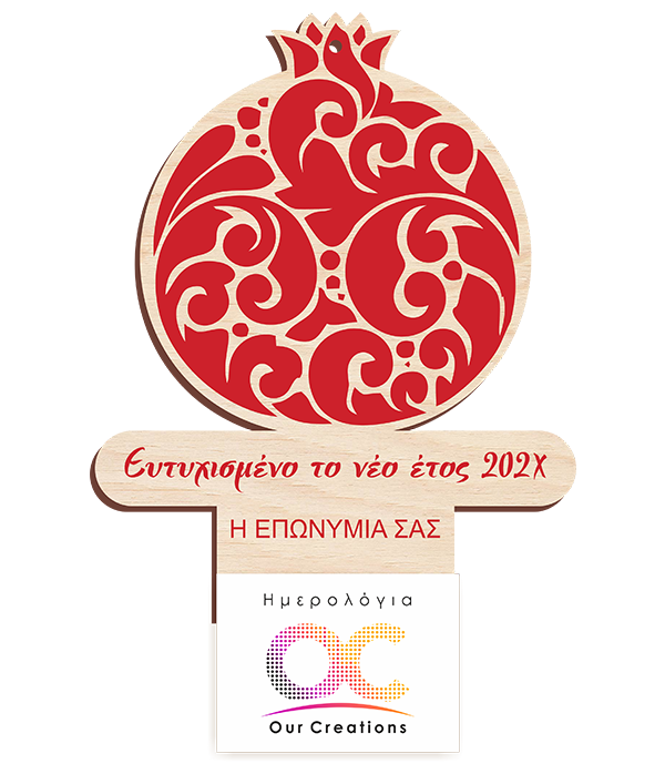Το ξύλινο ημερολόγιο «Ρόδι Ευημερίας» κατασκευάζεται από κόντρα πλακέ πρώτης ποιότητας ή MDF για μια πιο οικονομική επιλογή. Πρόκειται για ένα κομψό ημερολόγιο τοίχου, εμπνευσμένο από το παραδοσιακό σύμβολο του ροδιού, που συνδέεται με την καλοτυχία, την αφθονία και την ευημερία.